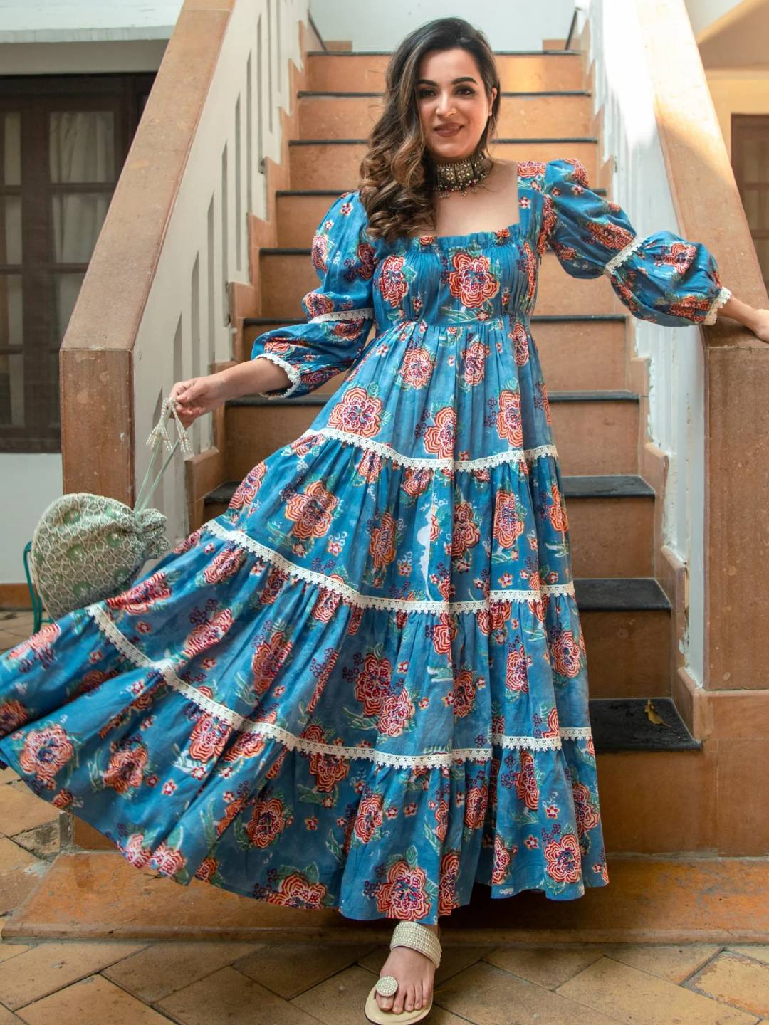 Princess Blue Handblock Dress